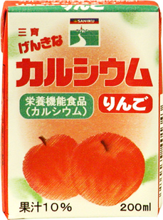 三育フーズの、げんきなカルシウムりんごは、焼成卵殻カルシウムをイオン化したりんご果汁入りのおいしいカルシウム飲料です。